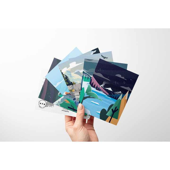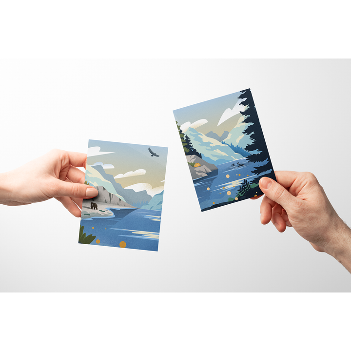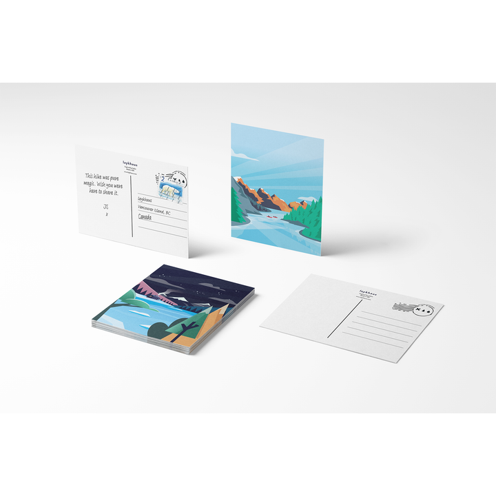 Share the spirit of adventure and the beauty of the wilderness with our PNW Postcards. Featuring hand-illustrated scenes of cozy cabins, tranquil lakes, and breathtaking landscapes, these postcards are perfect for sending warm wishes and sharing your travel tales. Let your loved ones experience the magic of the Pacific Northwest, one postcard at a time.