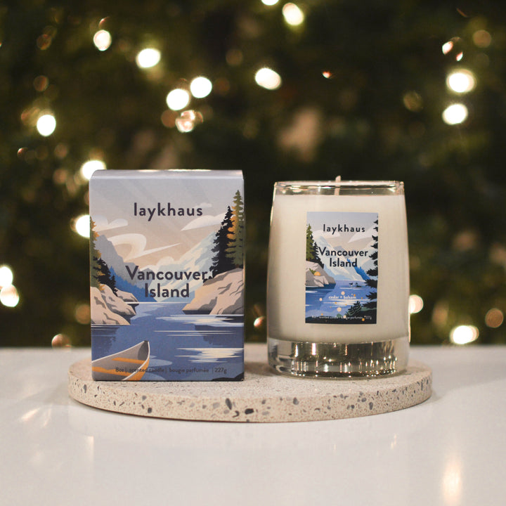 Embrace the scent, celebrate the scenery, and let Laykhaus' Vancouver Island Candle turn your home into a forest retreat.